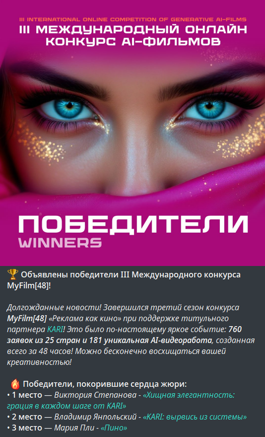 Наша работа стала победителем 3-го сезона MyFilm48, и этот опыт показывает, что даже в сжатых сроках можно создавать качественный контент, который выделяется.